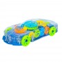 - Masinuta are carcasa transparenta si interior multicolor cu rotite interconectate.